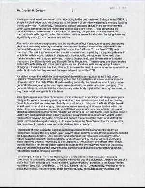 Here is a copy of the California State Water Board’s letter on suction dredging urging a continuation of the suction dredging moratorium in California.  Please click twice on each page to see a full sized image.