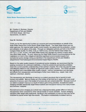 California Water Boards Letter on Suction Dredge Mining