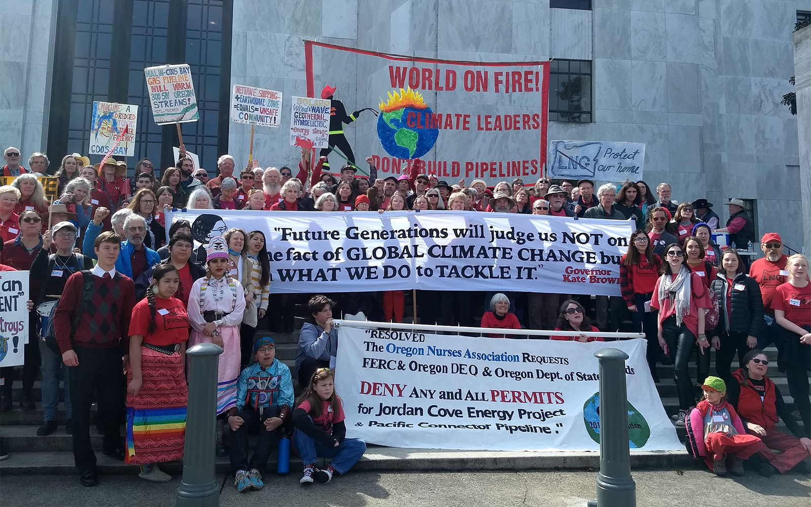 The Jordan Cove Energy Project: The Jordan Cove Energy Project, which includes the Pacific Connector Pipeline and fracked liquefied natural gas (LNG) export facility is currently the greatest threat to our climate security in the region. The Jordan Cove Energy Project is now a plan by Pembina, a Canadian energy company, to export fracked liquefied natural gas (LNG) from Canada and the Rockies overseas using Oregon as a right-of-way. If built, this 229-mile fracked Gas Pipeline and associated LNG Export Facility would threaten 485 waterways (including the drinking water for over 116,000 Oregonians), seize property from private landowners through eminent domain, create major safety and public health hazards, impact Tribal territories, cultural resources, and burial grounds, and become the largest source of climate pollution in the state. We continue to fight this project tooth and nail and won’t stop until the proposal dies once and for all. THIS PROJECT HAS BEEN CANCELLED!