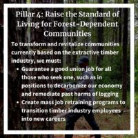 The Green New Deal for Pacific Northwest Forests calls not only for a transformation of industrial logging to protect forests, waterways and communities, but also for a jobs guarantee and increased government investments in climate resilience for frontline communities. In line with the intersectional movement for climate justice, the platform outlines a clear path forward for governments at all levels to utilize the invaluable forests of the Pacific Northwest as a tool to address the many crises facing the region and the country.