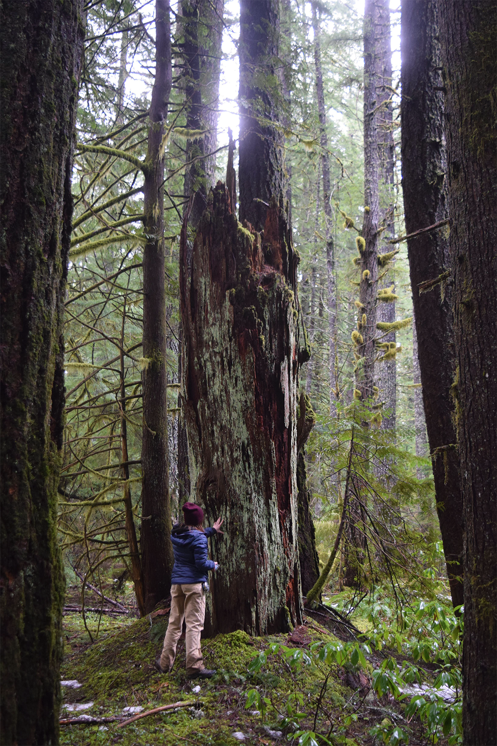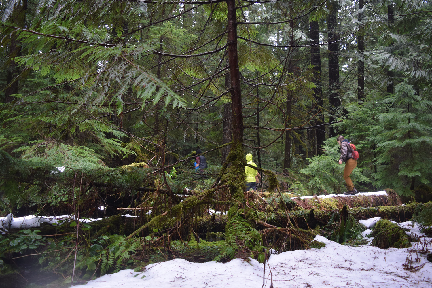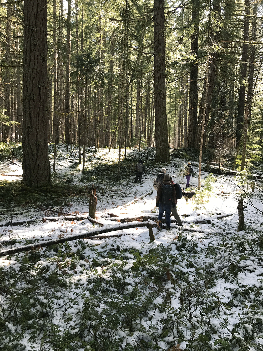 Exploring a timber sale unit in the, now withdrawn, Flat Country timber sale in the headwaters of the McKenzie River (photo by Andrew Kumler).