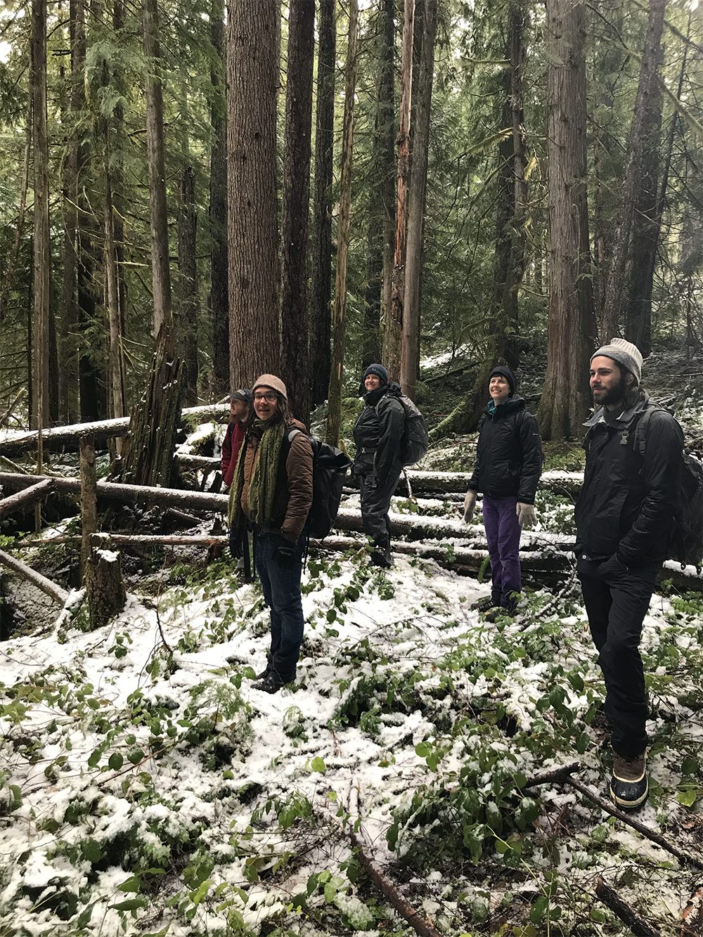 Cascadia Wildlands volunteers in a threatened unit of the, now withdrawn, Flat Country timber sale during the 2022 Fall Equinox Hike.