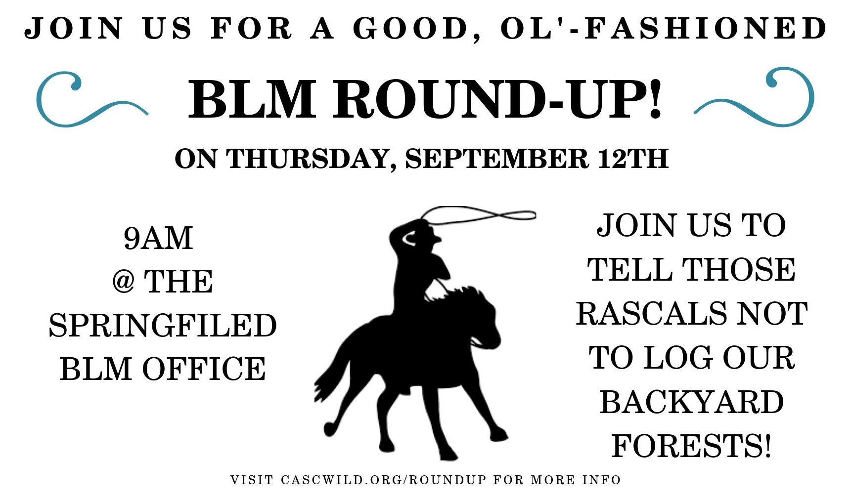 Grab your best boots, wear GREEN and meet us outside the BLM headquarters at 9am for a theatrical roundup where you’ll learn all about the Shotcash timber sale and the crimes the BLM and timber barons are guilty of committing in our backyard forests. After the roundup, we’ll head inside to attend the auction and show our unity in support of healthy forests and a future free of clearcuts!