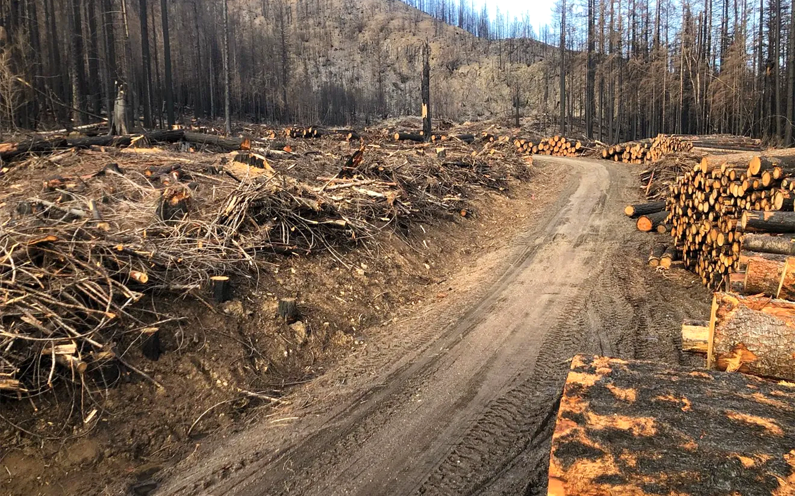 April 13, 2021 — Today, over twenty conservation and climate justice organizations sent a letter to Cabinet Secretaries Deb Haaland of the Department of the Interior and Tom Vilsack of the Department of Agriculture opposing the sweeping post-fire roadside logging proposed or actively being carried out by their respective agencies. The organizations are calling for an end to the blanket prescription linear clearcuts within the perimeters of the 2020 Labor Day wildfires, and a halt to the use of Categorical Exclusions (CE) by federal land management agencies to bypass environmental review and public participation. These clearcuts are up to 200 feet wide on both sides of roadways, adding up to tens of thousands of acres of clearcuts in addition to the hundreds of thousands of acres of private land clearcuts and proposed public lands post-fire logging.