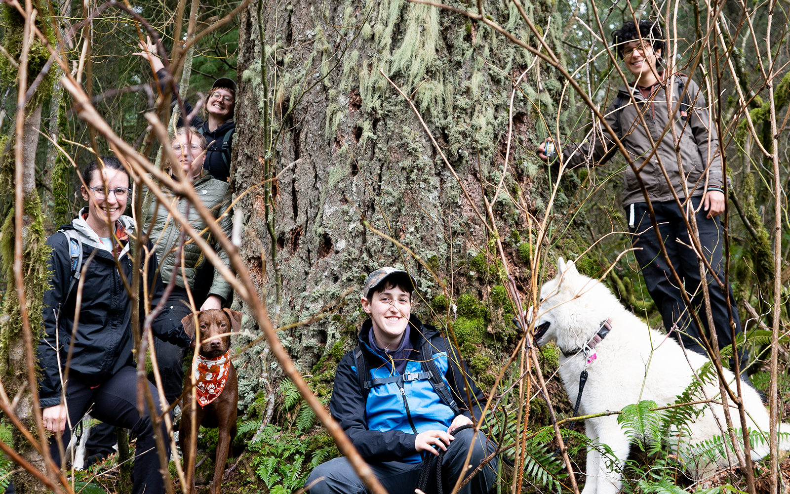Cascadia Wildlands staff admire an old-growth tree at the Blue & Gold sale (photo by Cascadia Wildlands).