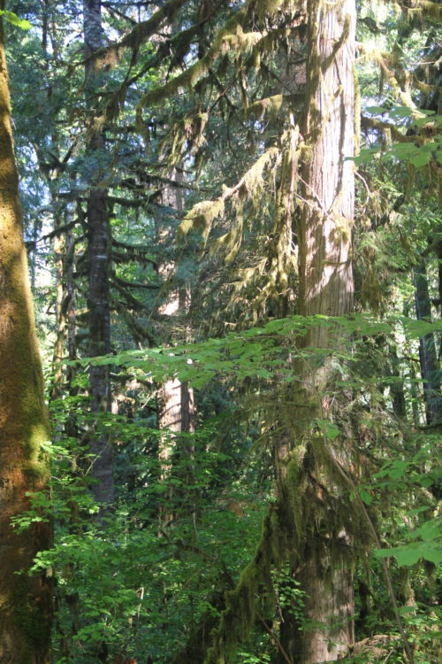 The trees through parts of this unit were exceptional. This is a dinosaur forest: big, primeval, and green. Fatty douglas fir and swampy ancient cedar droop with moss and lichen. The steady hush of Rock Creek mixes with the breeze through the high forest canopy.