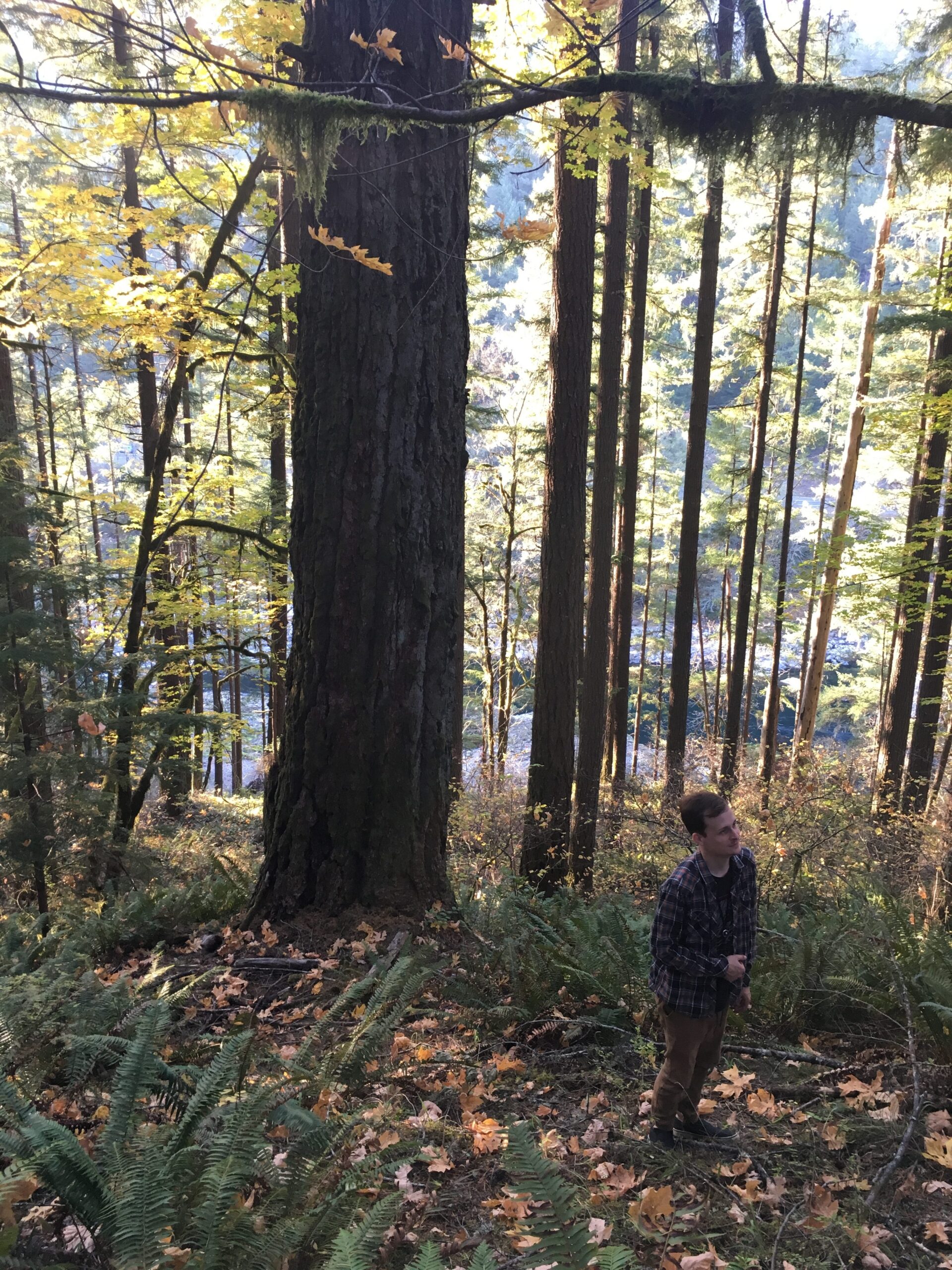This past weekend I joined a group of Roseburg locals for a hike organized by Instagram artist and backwoods explorer Chris MacKenzie through some of the old-growth groves in Umpqua Sweets units. Chris has a knack for finding the big trees. He sniffed out this big lady alongside the river.