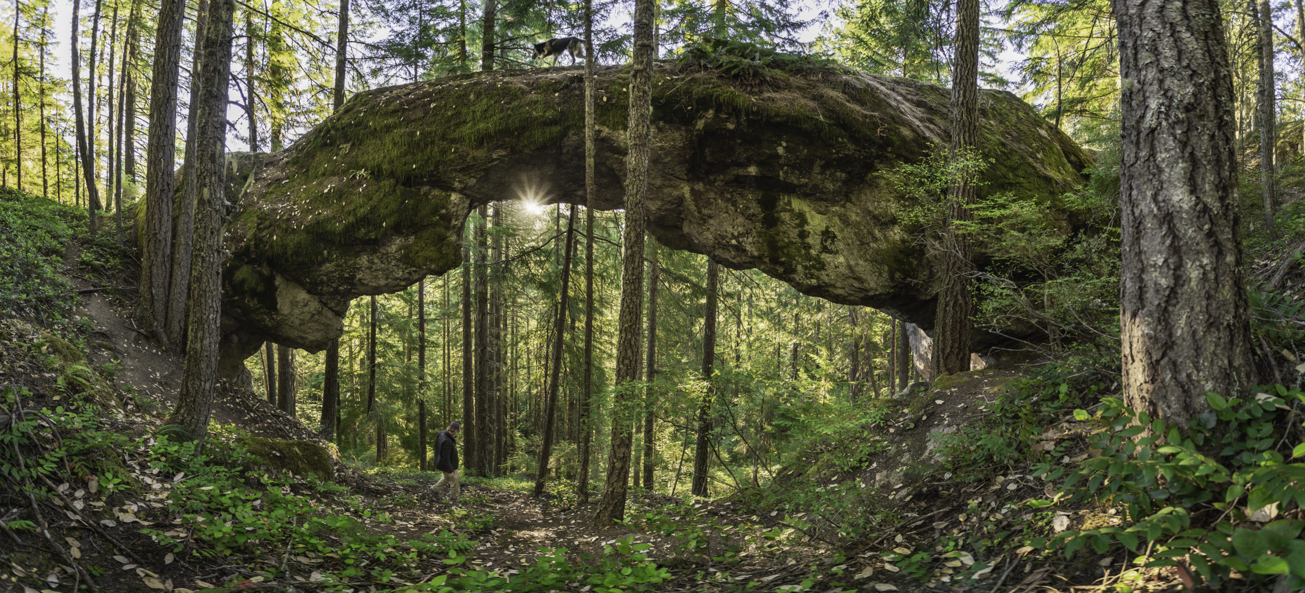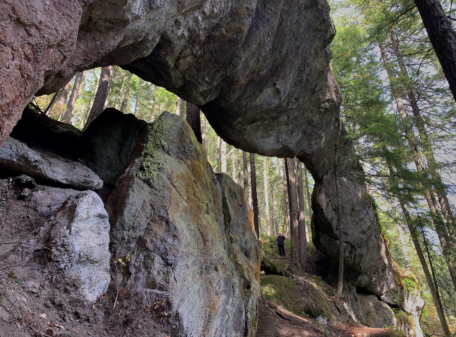Cascadia Wildlands’ field checkers recently found a natural rock arch within one of the proposed logging units (see picture below). This unique geological feature should be protected as a special site, not incorporated as part of an industrial logging project.