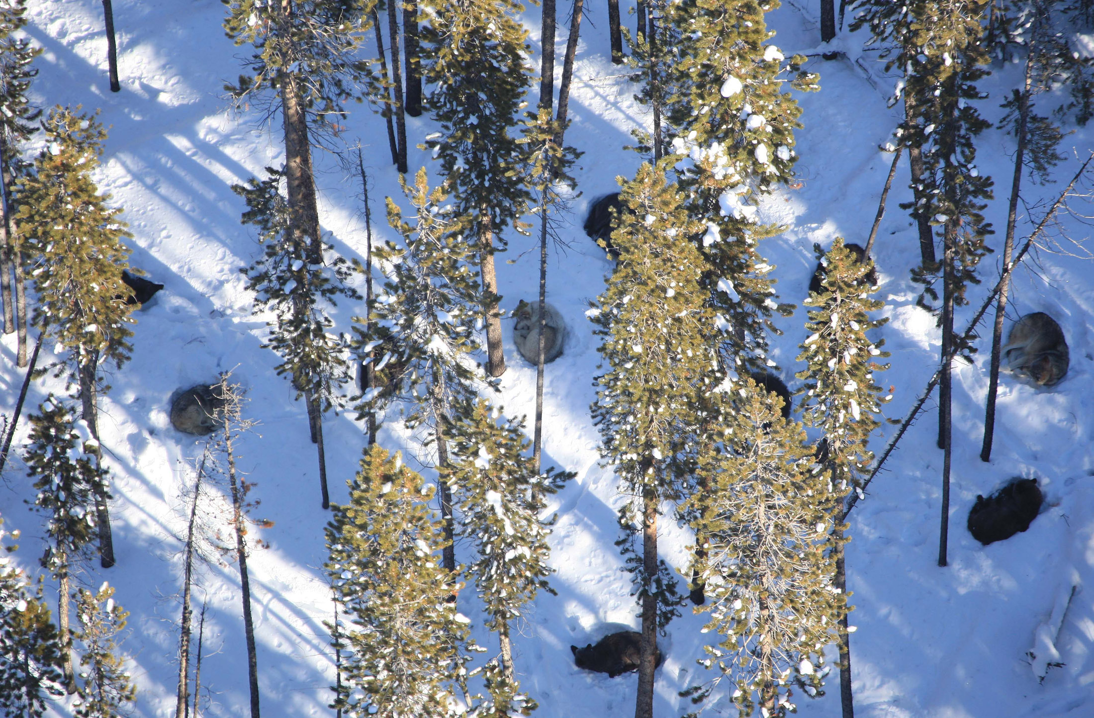 Gibbon wolf pack beds down in the Rockies (Doug Smith).